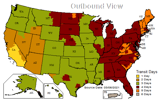 UPS Transit Times: Visalia vs. Fresno vs. Bakersfield vs. Tracy vs. Las Vegas vs. Reno